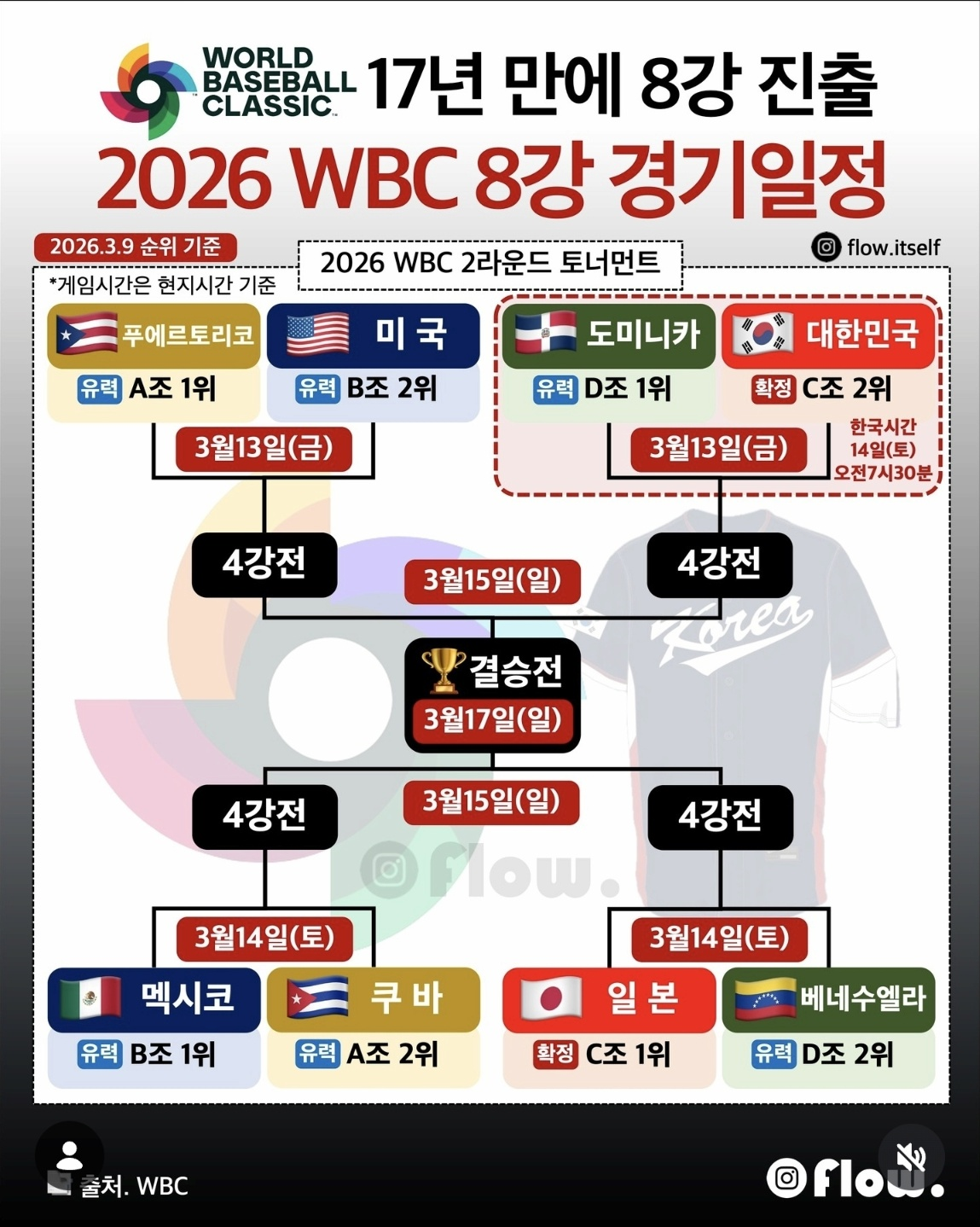 🗓 2026 WBC 8강 일정 (한국 중심)